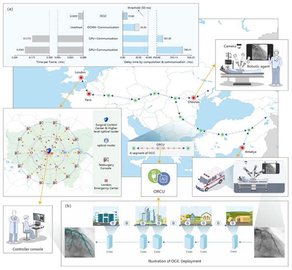 An Optical Computation-in-Communication framework is demonstrated which embeds high-speed photonic AI inference directly into optical fibre networks to drastically reduce latency and enable reliable, real-time telesurgery across global distances.